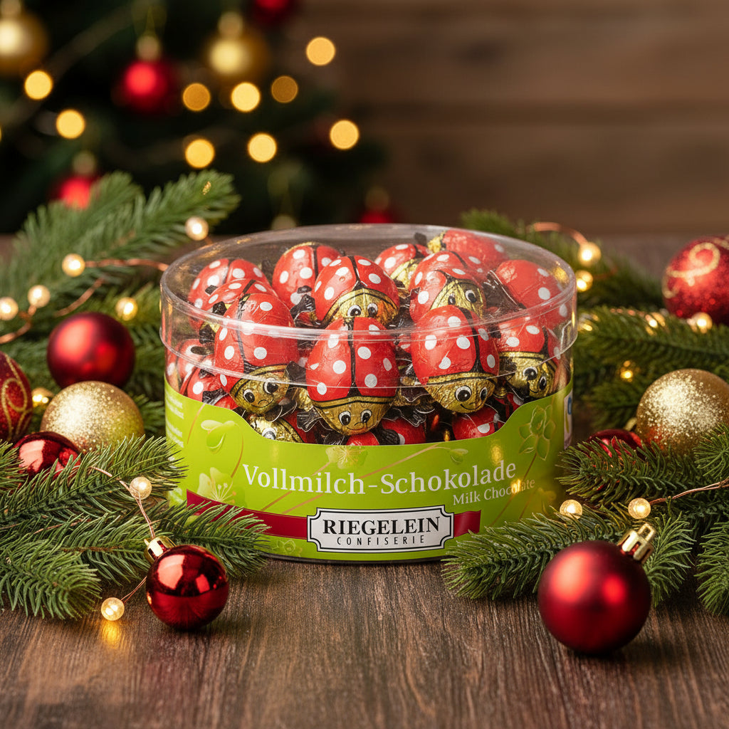 Packaged in a clear reusable drum, they’re perfect for sharing, party favors, holiday baskets, or adding a cheerful touch to table settings. Crafted in Germany by Riegelein, one of Europe’s most beloved chocolatiers since 1953, these charming ladybugs combine whimsical design with premium chocolate flavor.