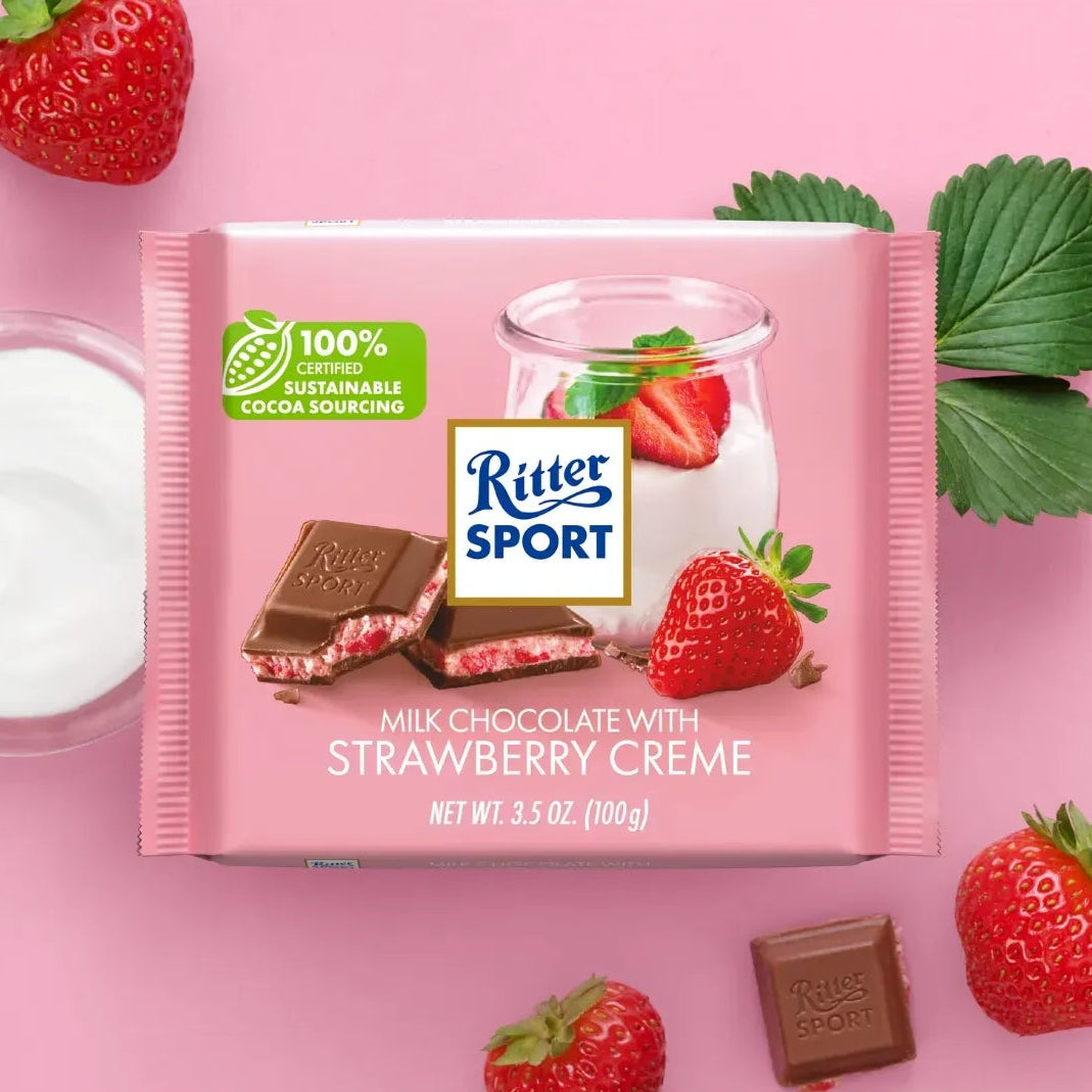 Ritter Sport Milk Chocolate with Strawberry Cream Filling